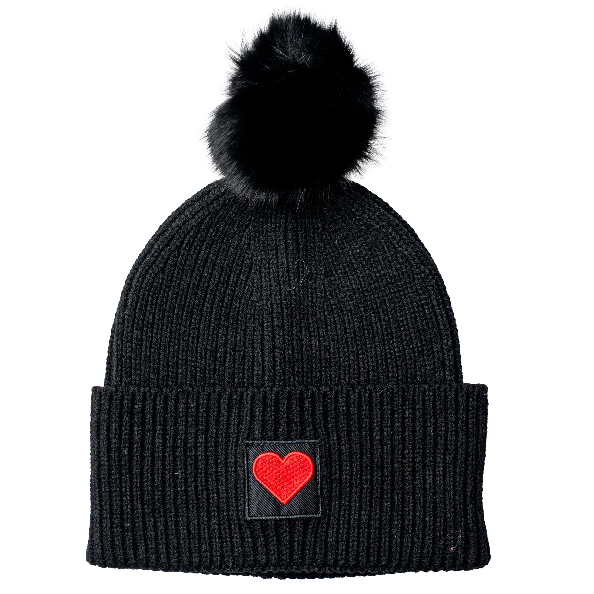 Schöne Farbkombination: Schwarz mit Bommel in Schwarz und Herz in Rot