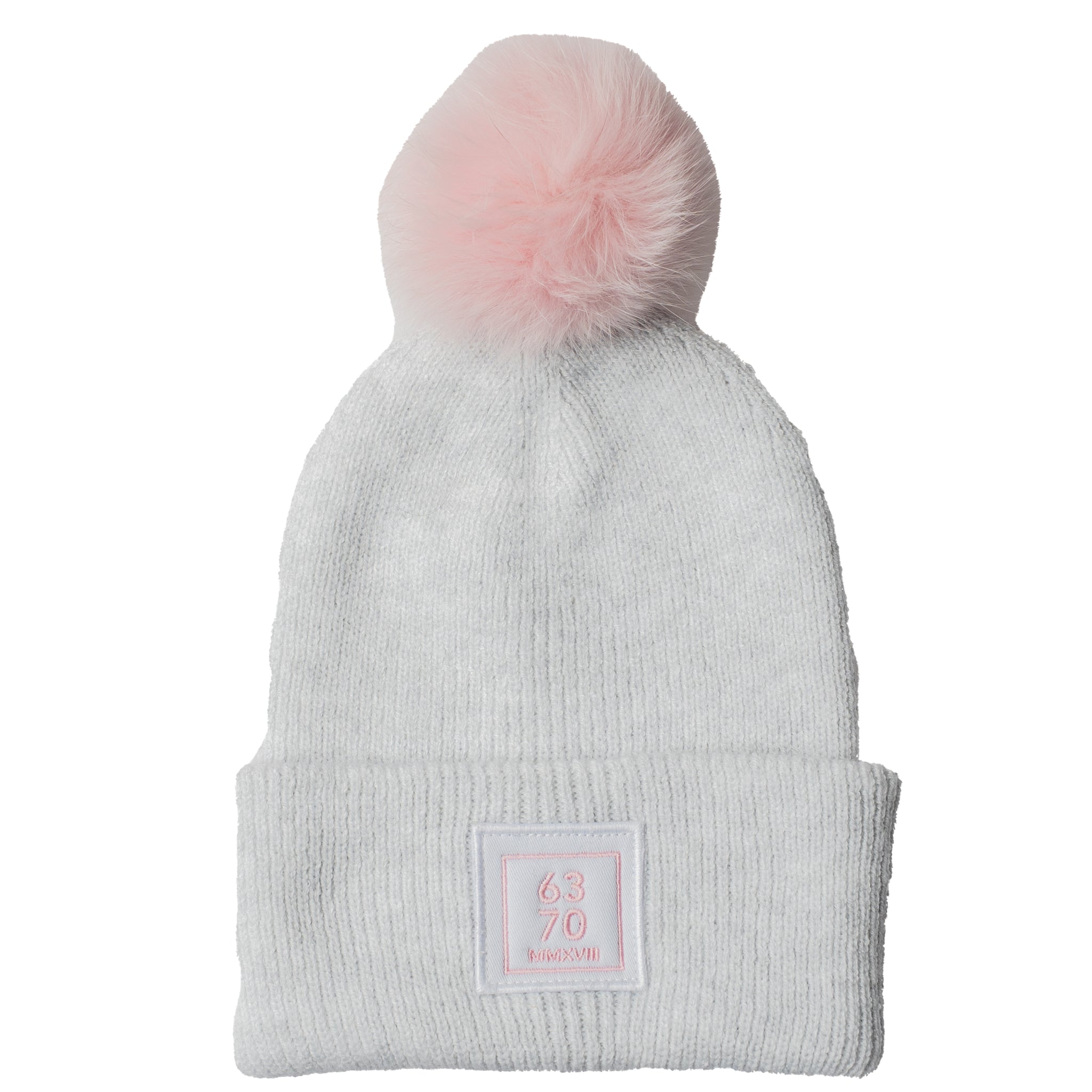 Schöne Farbkombination: Cloudygrey mit Bommel und 6370 Logo in Rosa